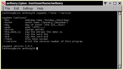 Updates: files to download Download: saydate-0.3.0.tar.gz source code Download: saydate_0.3.0-1_i386.deb Debian package maintained by Dr. Guenter Bechly Download: saydate_0.3.0-5 and saydate_0.3.0-5 Debian package maintained by Oohara Yuuma