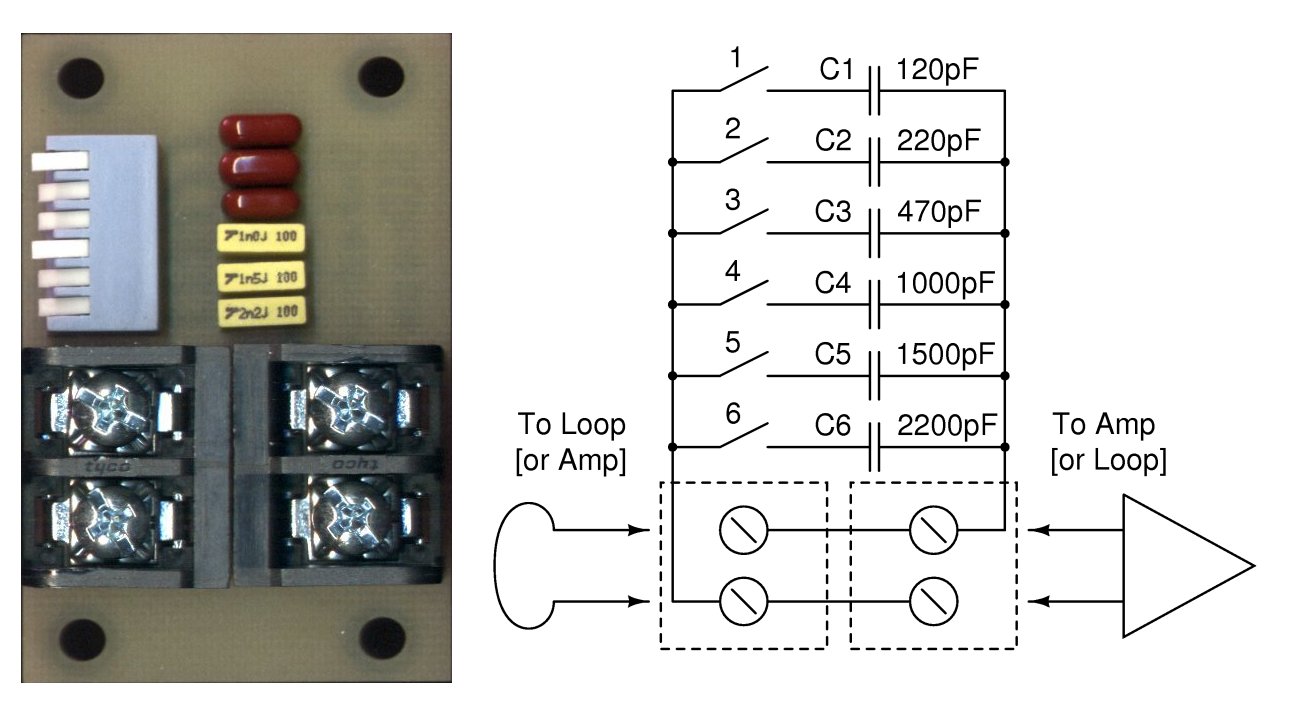 The Unihedron CapSelector provides an inexpensive way to tune a VLF loop over a wide range (120 - 5510 pF) of capacitances.