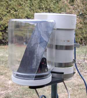 Showing the solar charger kit connected to an SQM-LU-DL mounted in our standard housing (SQM-H),